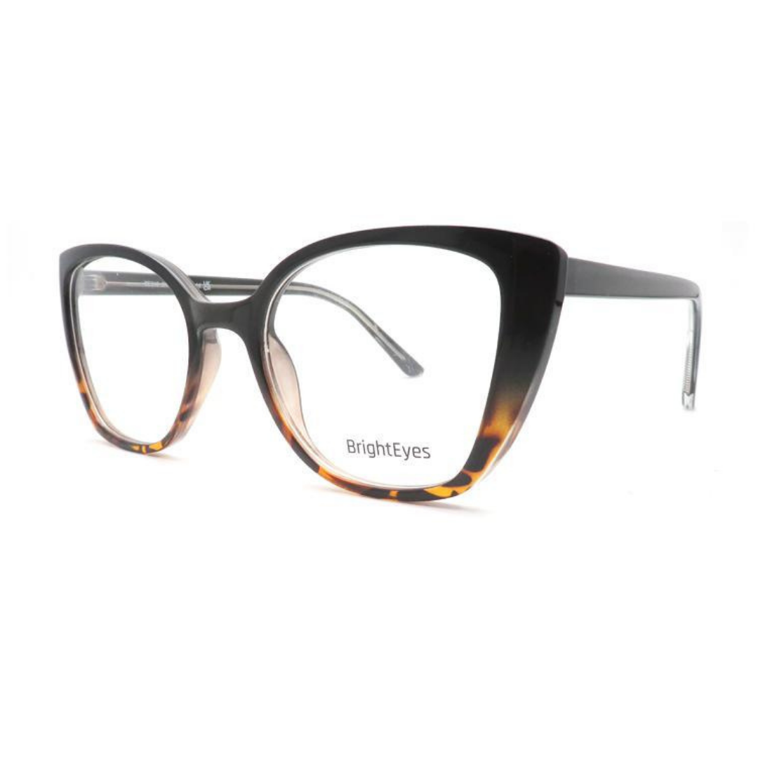 A feminine butterfly cat-eye frame with a flattering, lifted silhouette. Crafted from plastic, it offers a secure and comfortable fit while enhancing its elegant, expressive shape. Perfect for those who enjoy a more refined style.